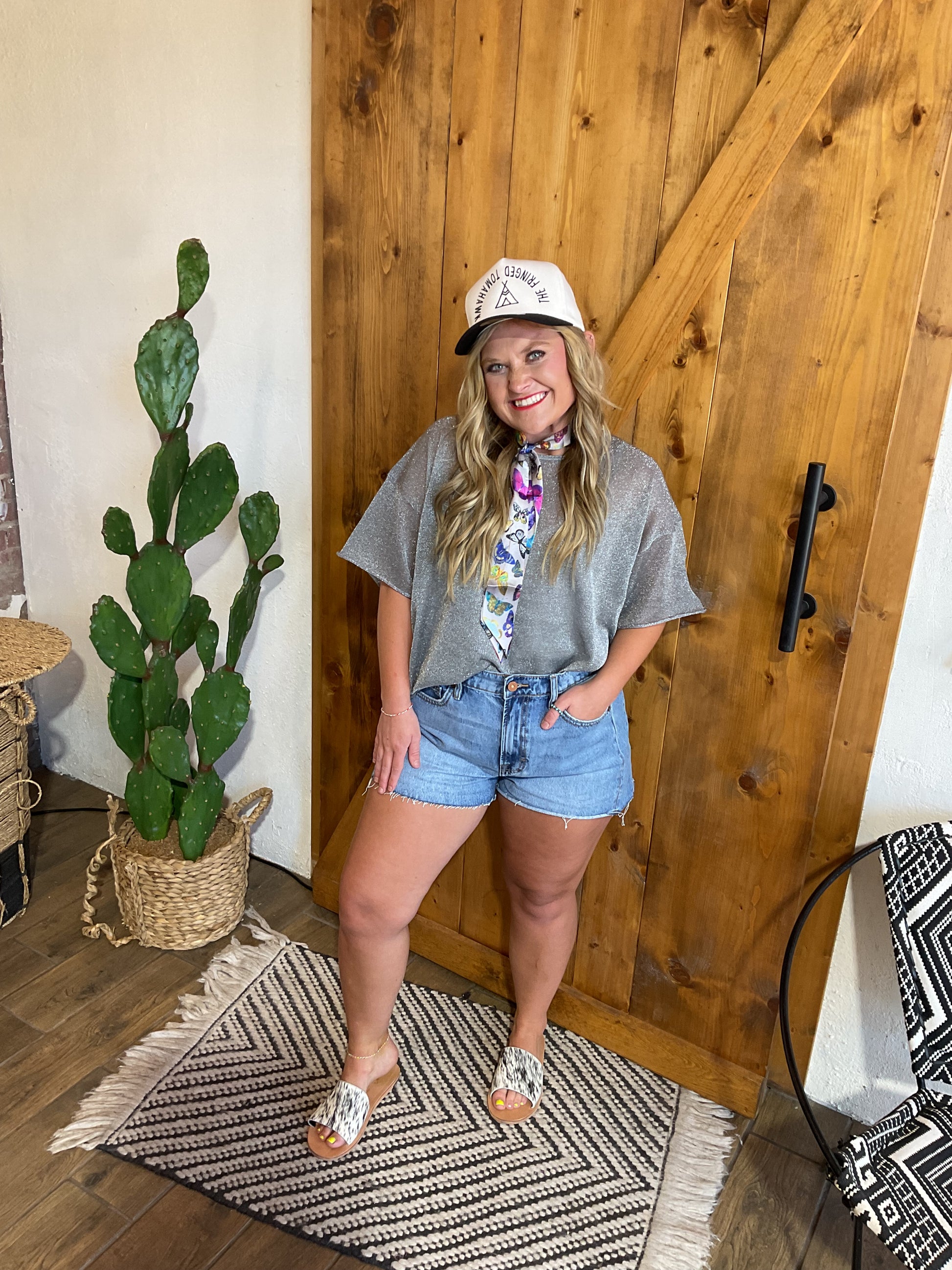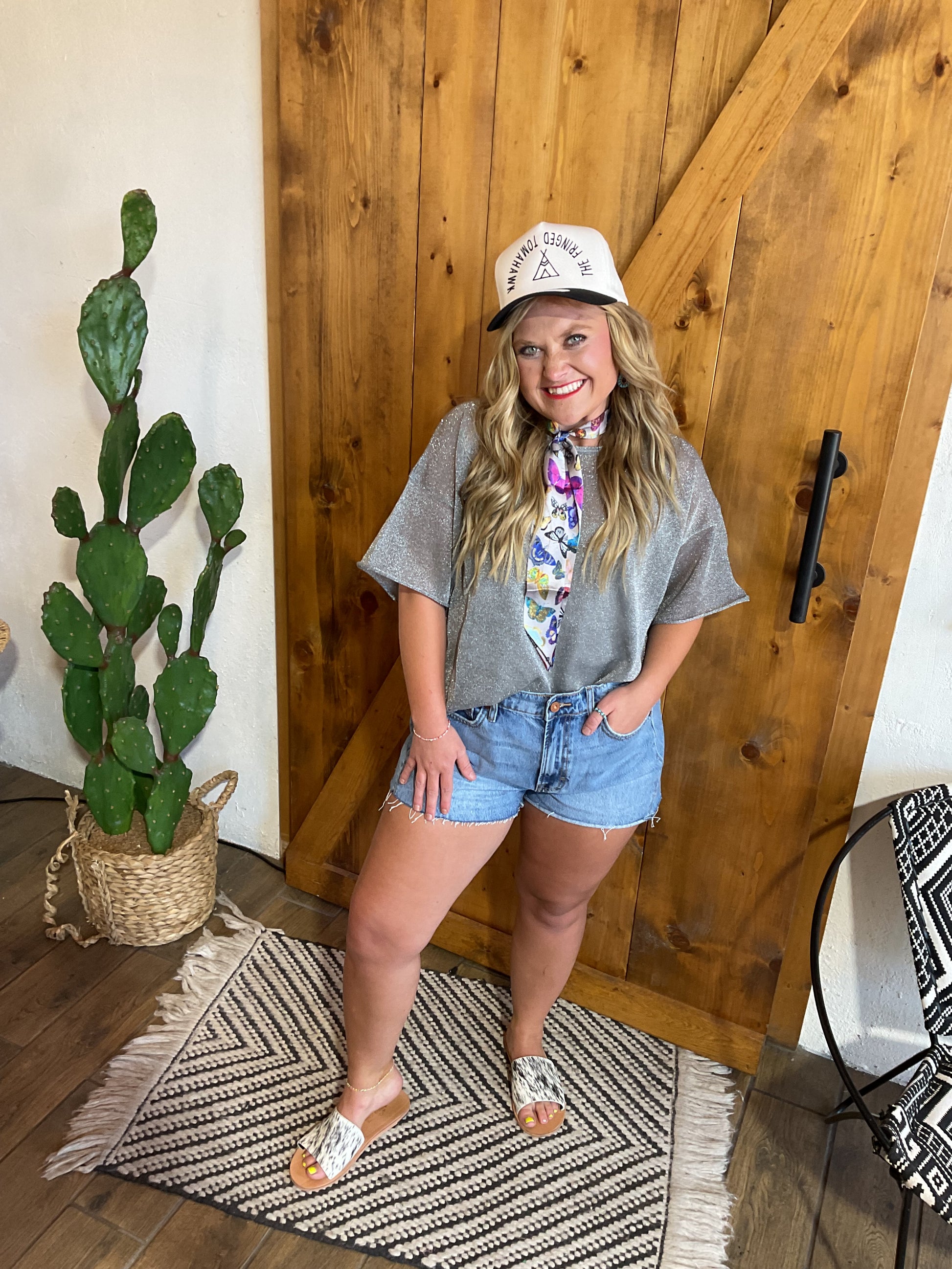 Light wash cut off denim wide leg short.