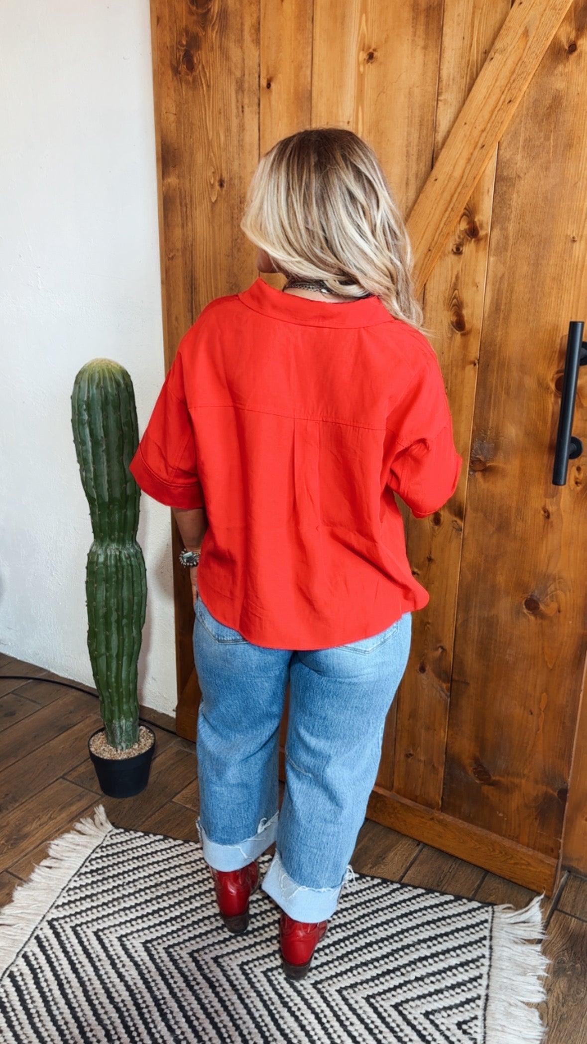 High low top button down shirt