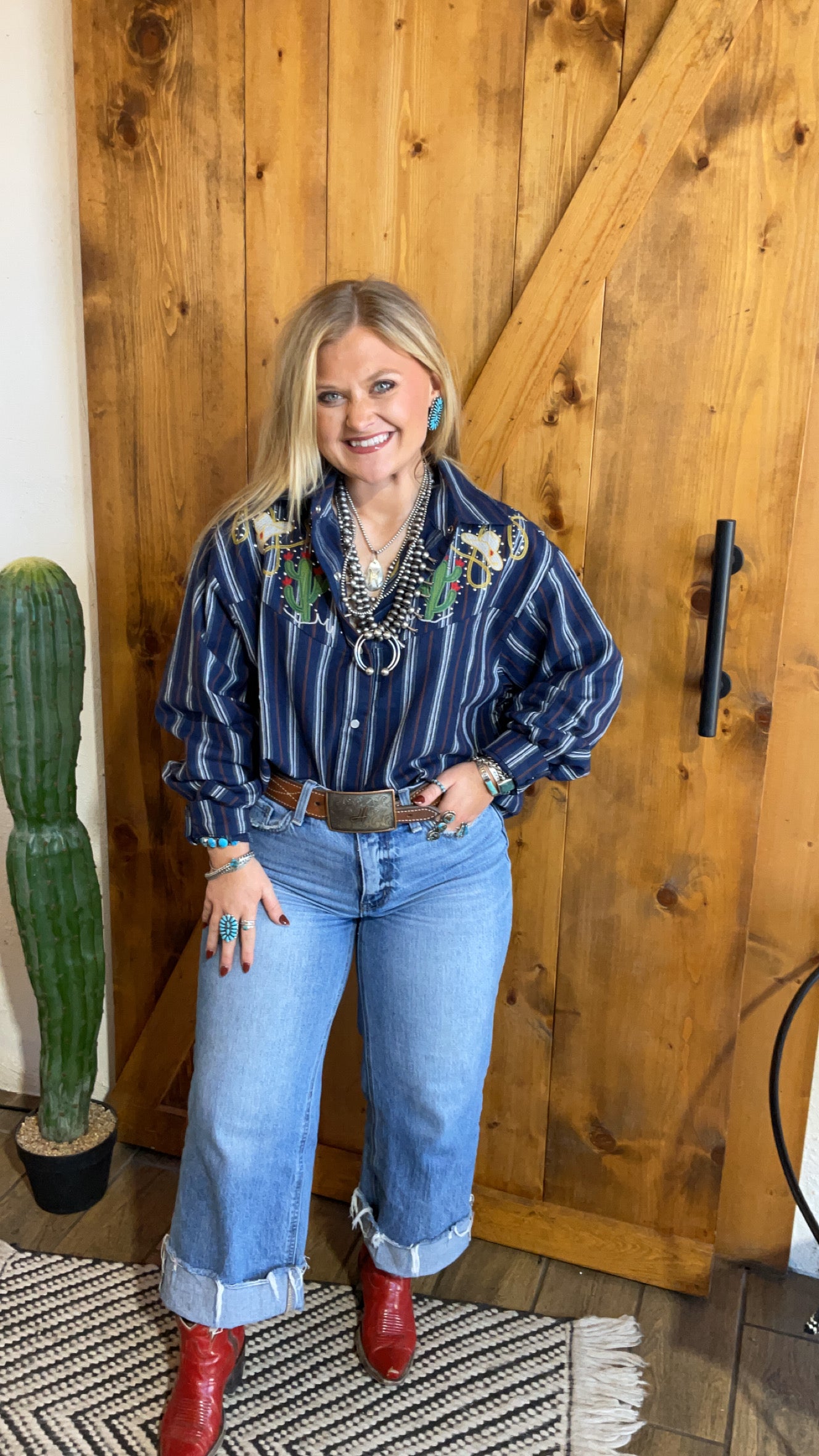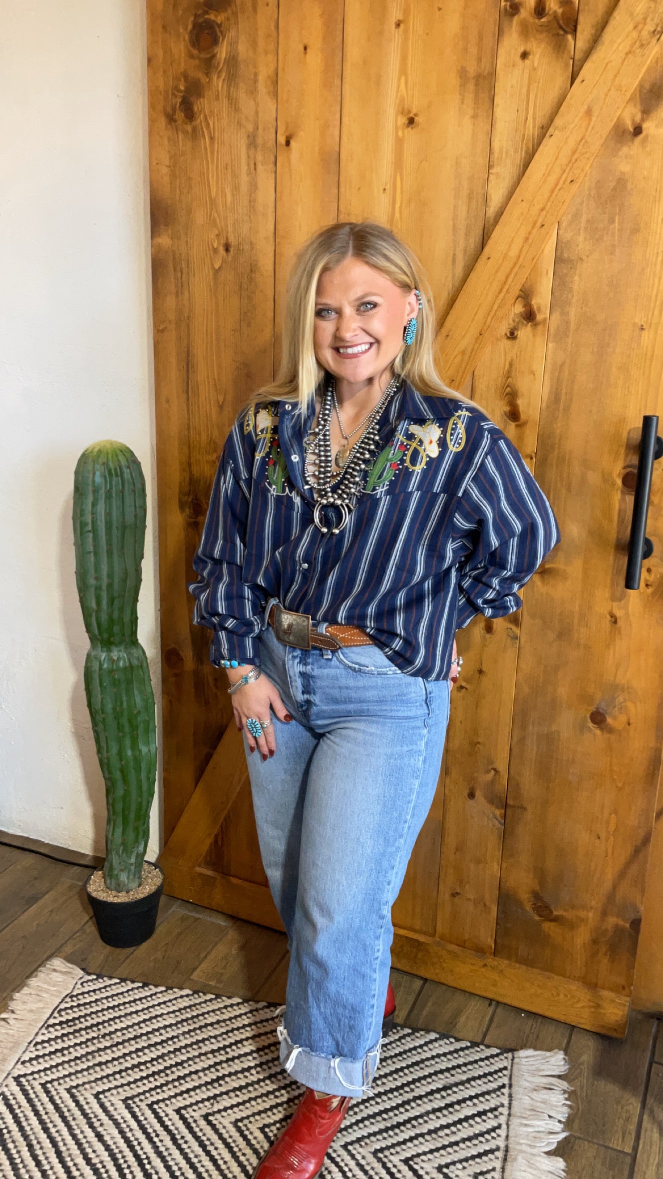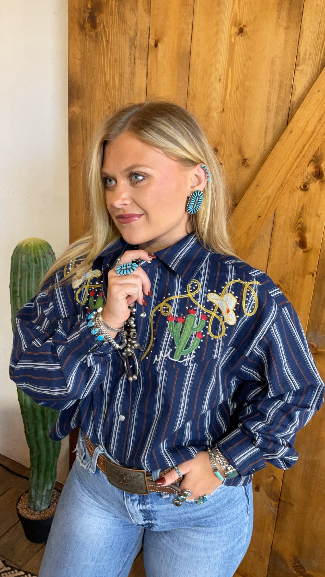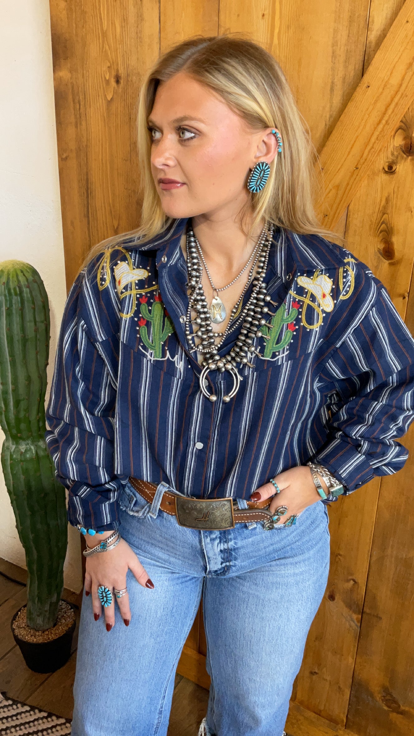 Vintage looking pearl snap shirt with wester embroidery